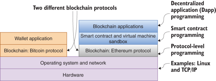 이러한 프로토콜은 대표적으로 비트코인과 이더리움으로 나눌 수 있는데 각 코인의 스택은 다음과 같습니다.